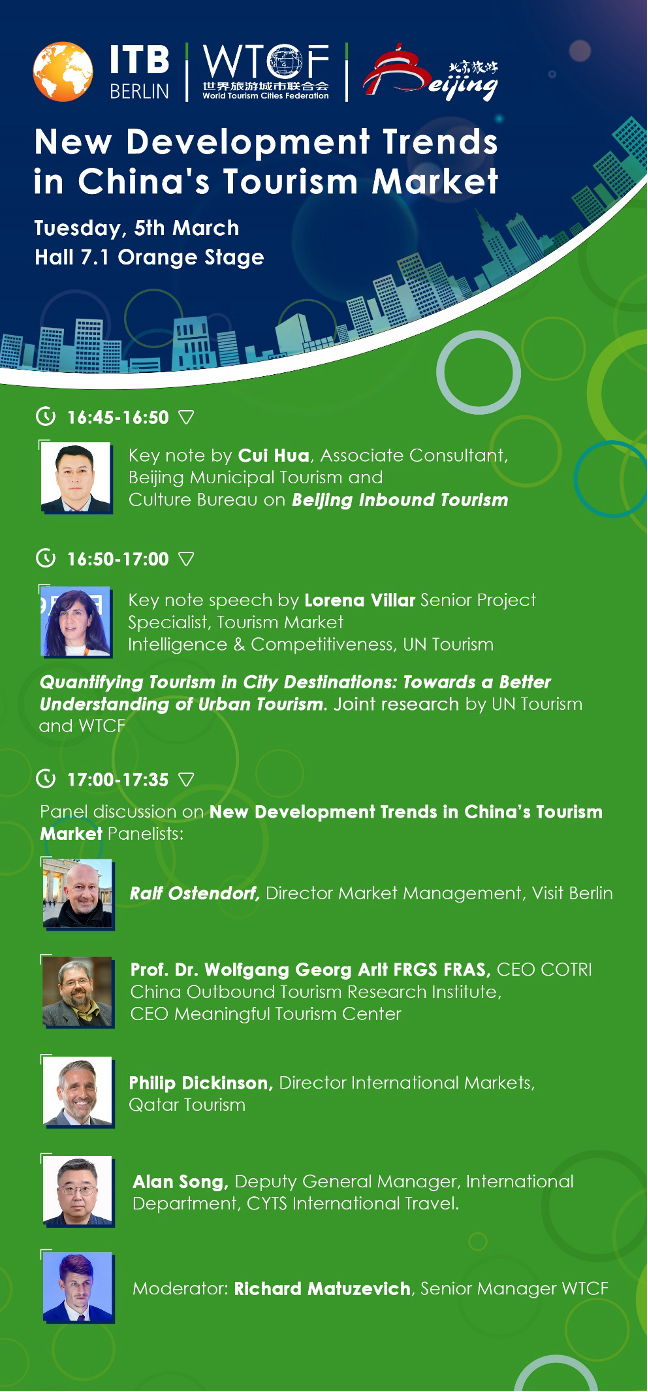 For tourism experts, Berlin is the place to be in the coming week. Hopefully many of our readers will be able to come to ITB Berlin and to visit the China tourism panel organised by WTCF World Tourism Cities Federation. Among the speakers will also be the author of this text. The panel is scheduled for May 5th, 16.45 h in Hall 7b of ITB Berlin. Participation is free, but you will need an entry ticket for the fair.